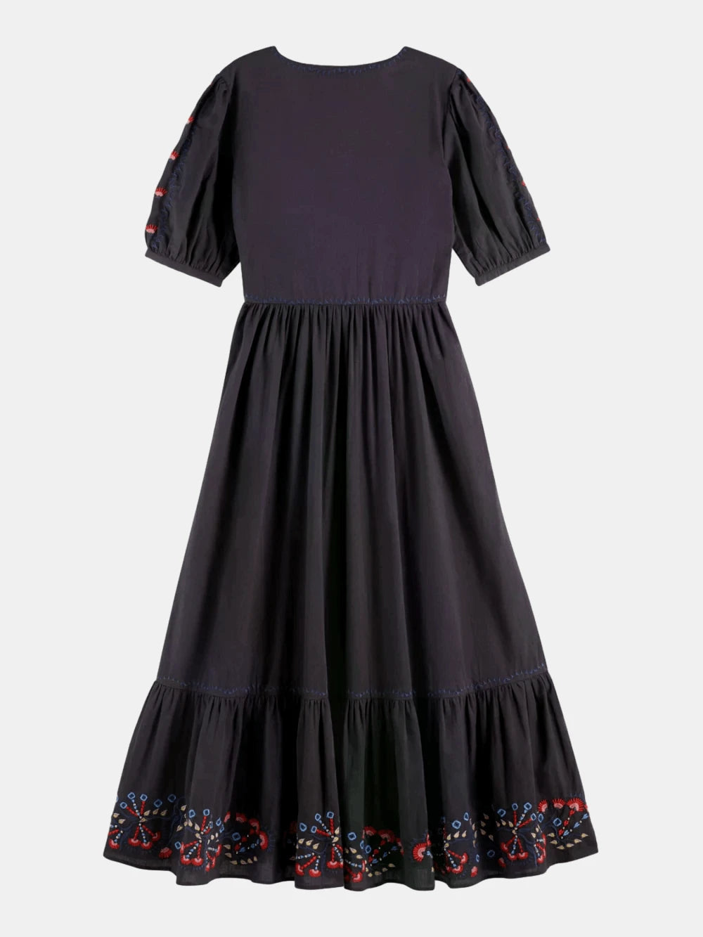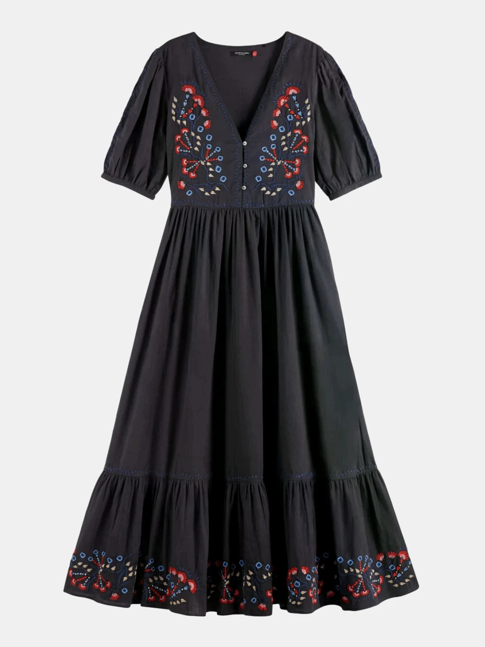 Elegant maxi dress with intricate embroidery, perfect for any occasion. Flowy silhouette offers comfort and style effortlessly.