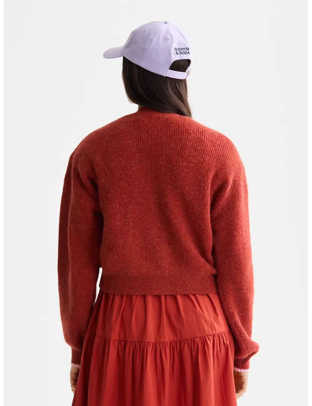 This fuzzy relaxed cardigan is your go-to for chilly days. Its blend of wool, alpaca, and polyester keeps you warm without the itch. Plus, the 'Ketchup' shade adds a bold pop to your wardrobe.