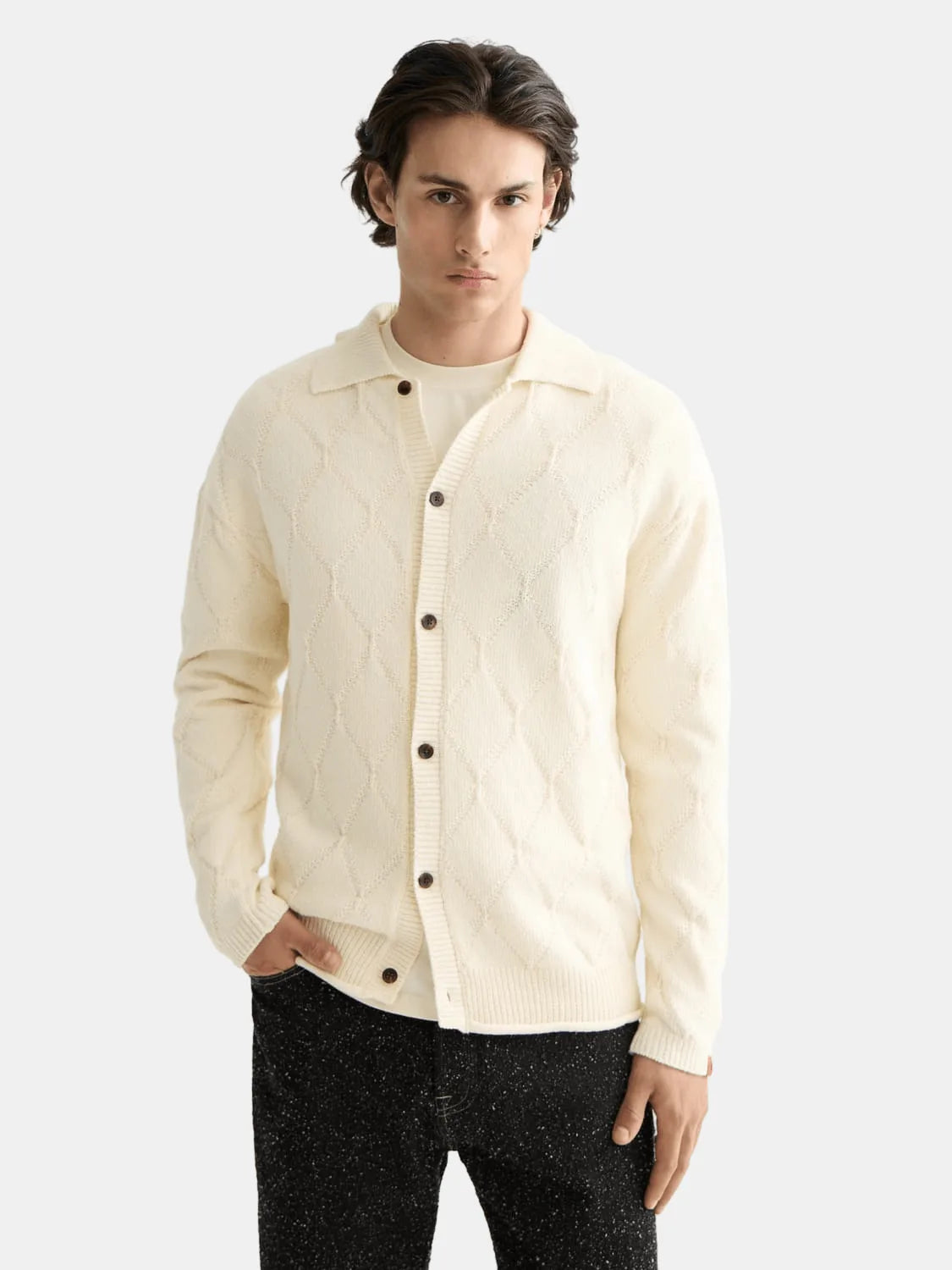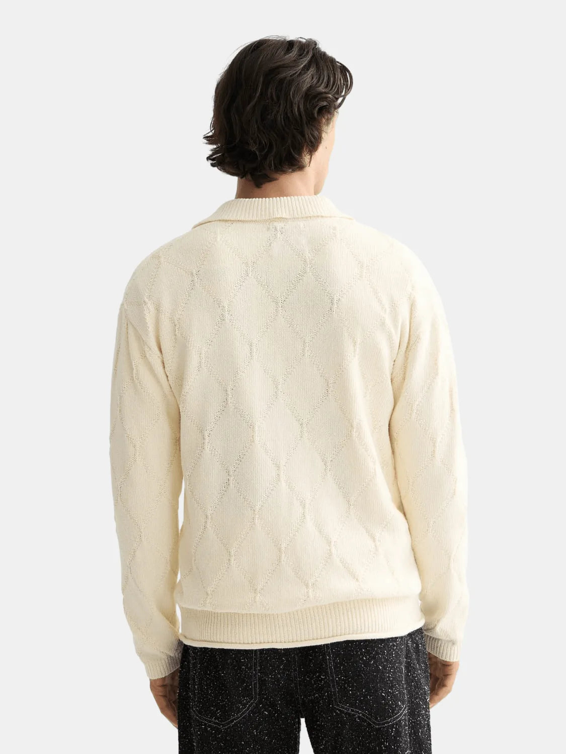 Stylish long sleeve shirt with intricate open work design. Perfect for layering or wearing alone, offering a chic, versatile look.