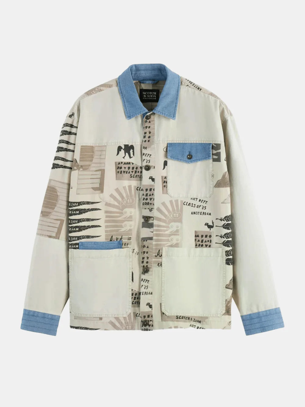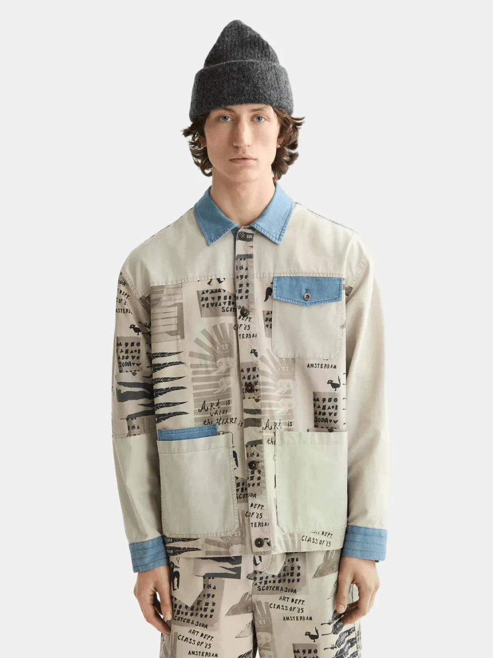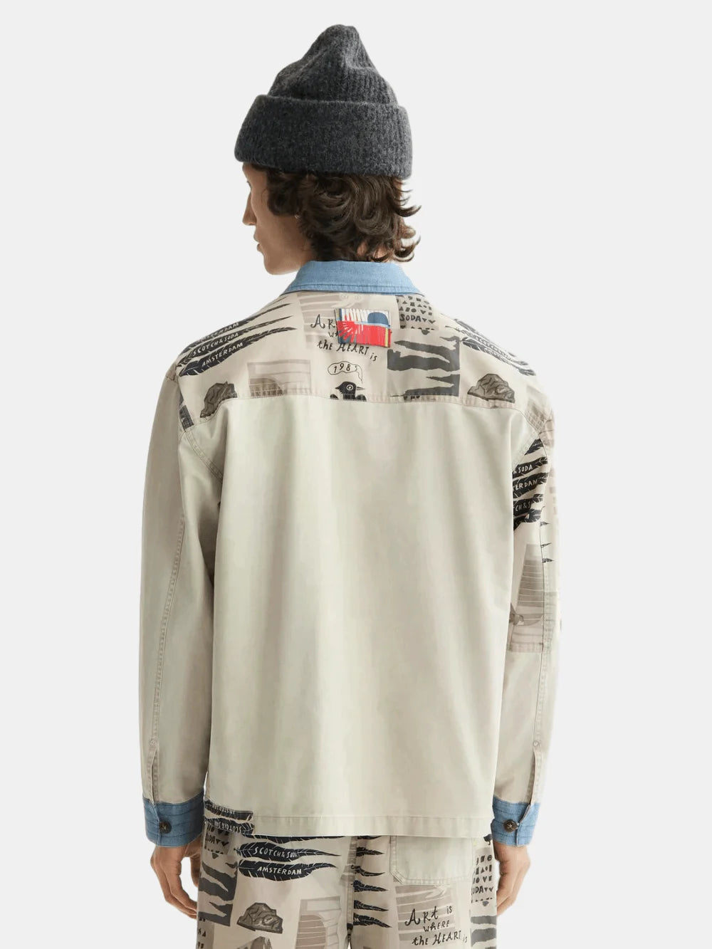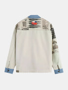 Stylish worker jacket with a unique printed and washed design. Perfect blend of comfort and fashion for any occasion.