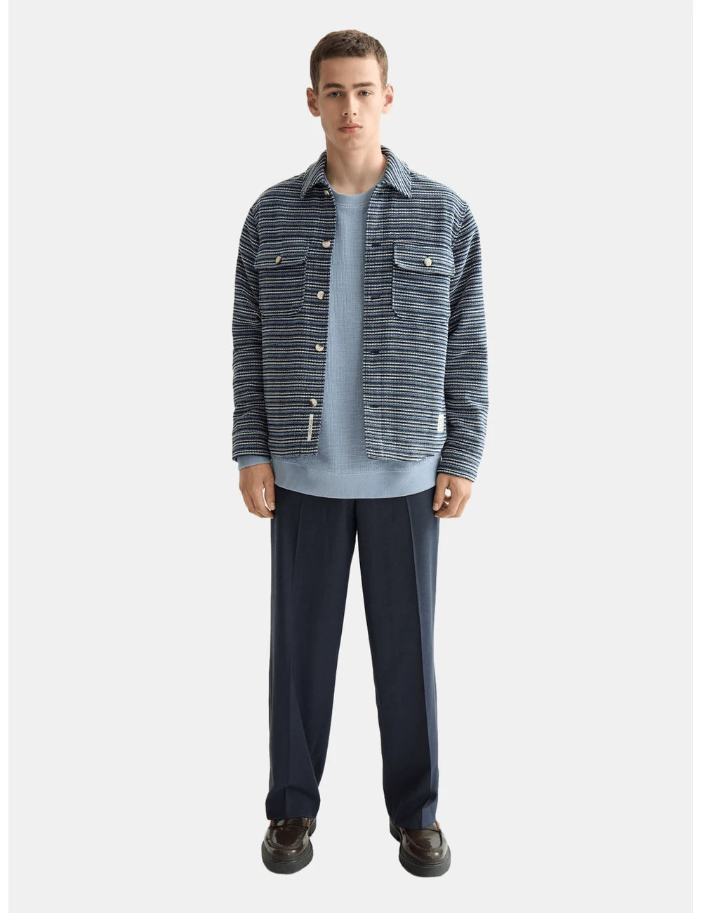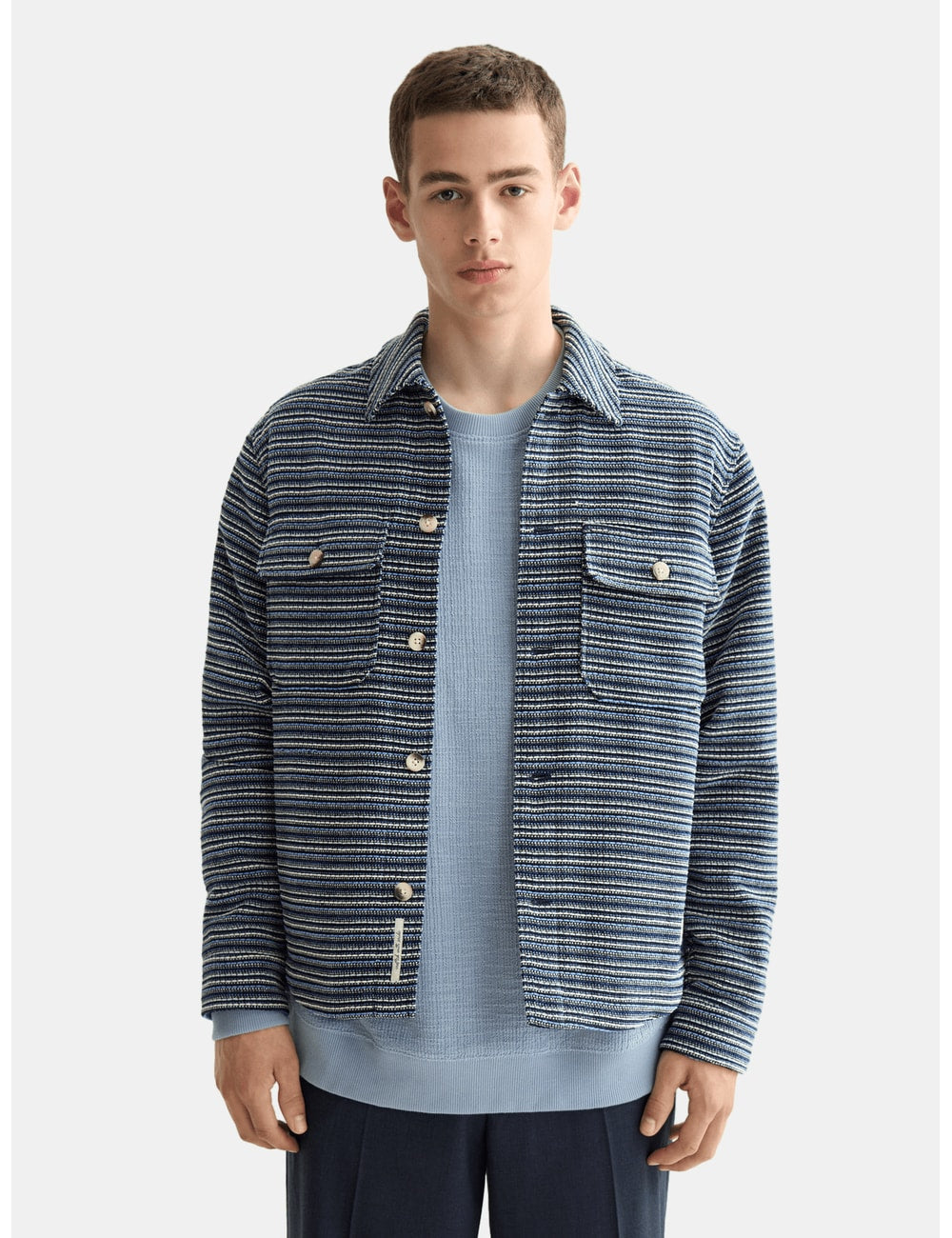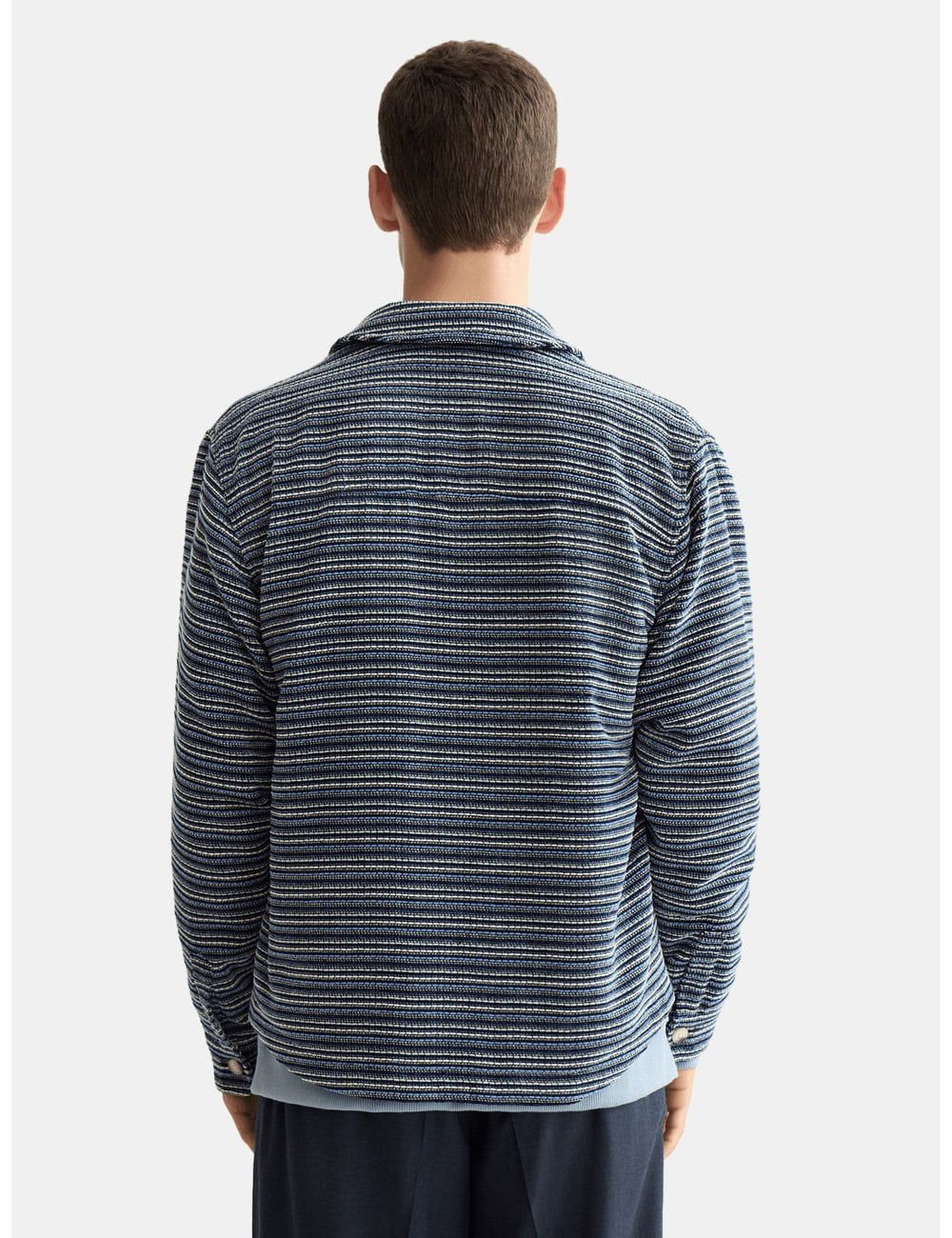 Stylish structured overshirt with a classic striped design. Perfect for layering, offering both comfort and a modern look.