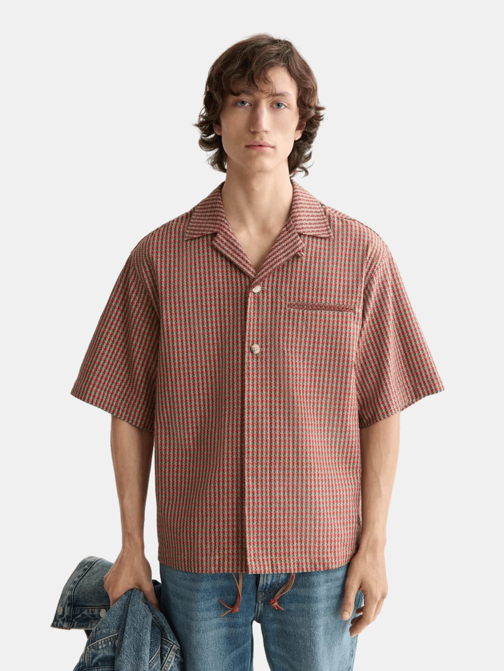 Short-sleeved shirt with a micro geometric print. Perfect for casual outings, offering a stylish and comfortable fit.