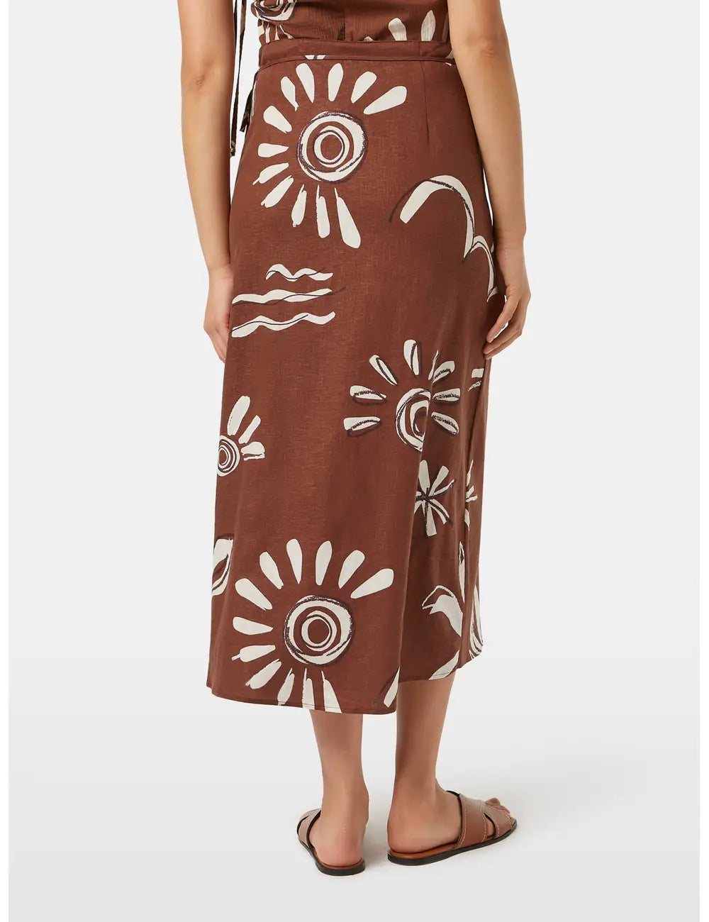 Stylish linen blend wrap skirt with a chic print. Perfect for versatile styling, offering comfort and elegance in every wear.