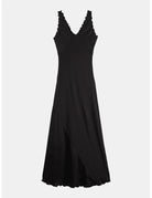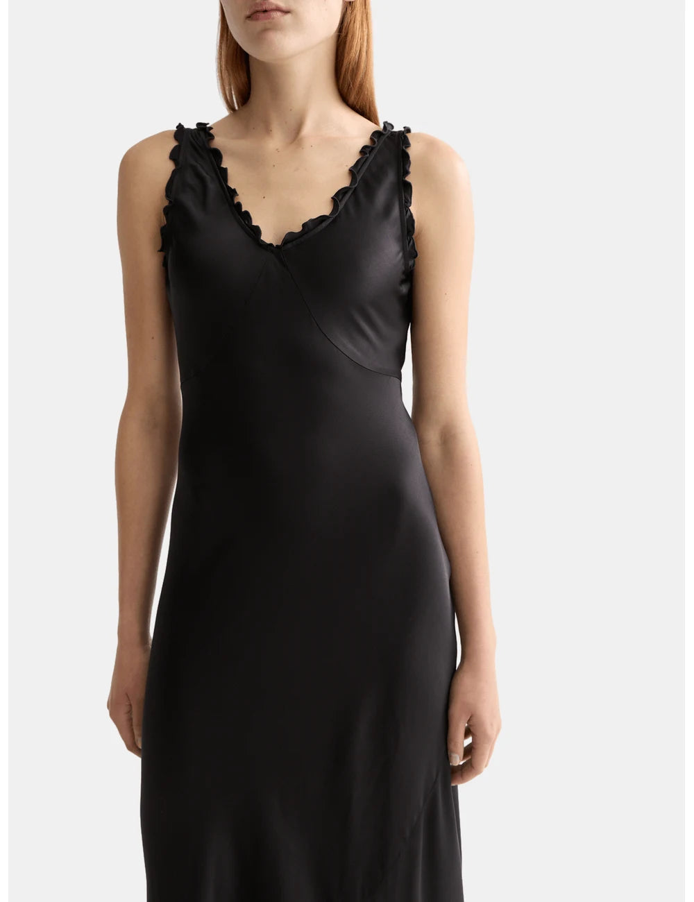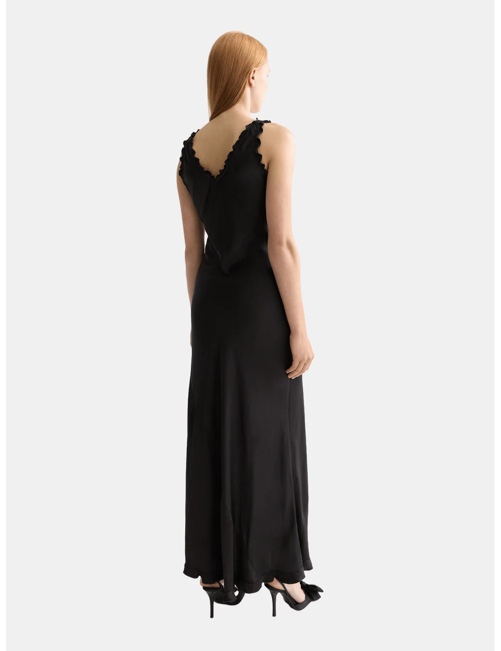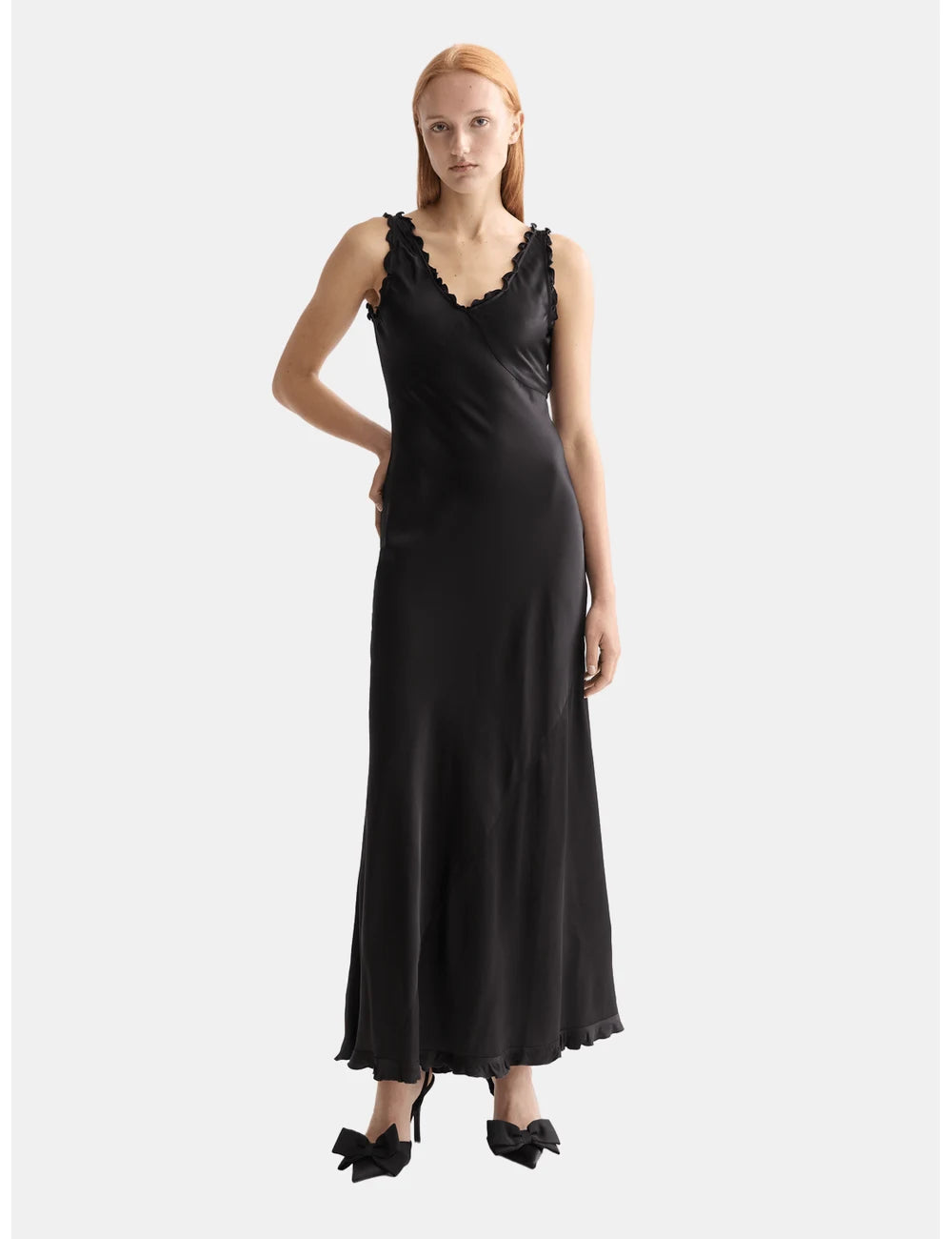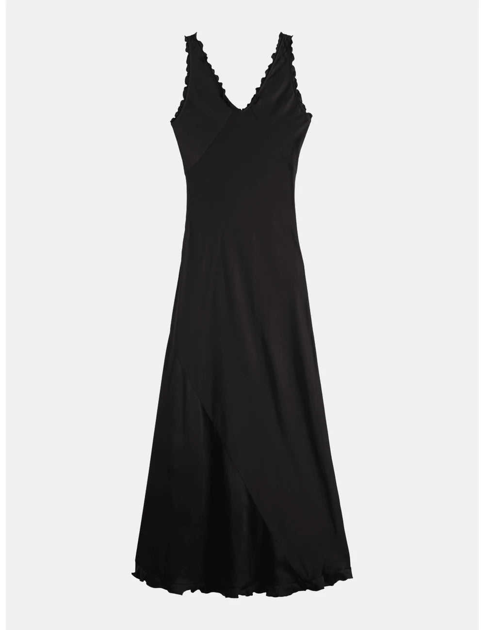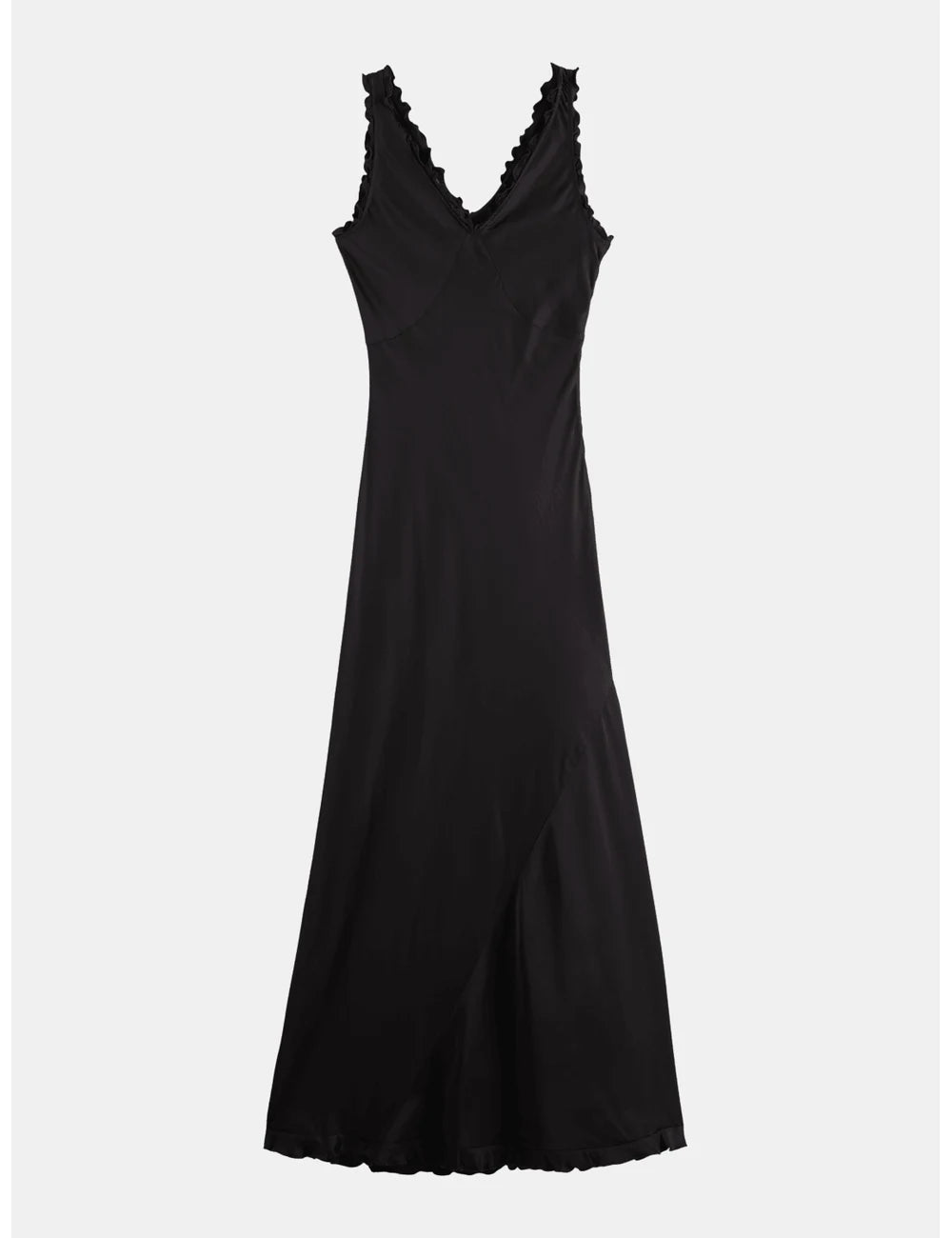 Elegant maxi slip dress with ruffled edges. Perfect for any occasion, offering a flowing silhouette and stylish detail.