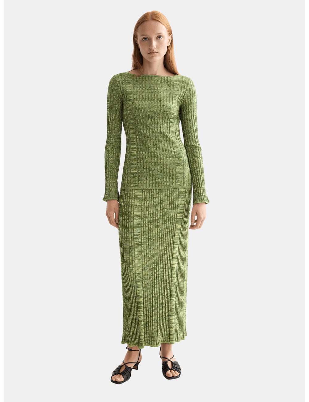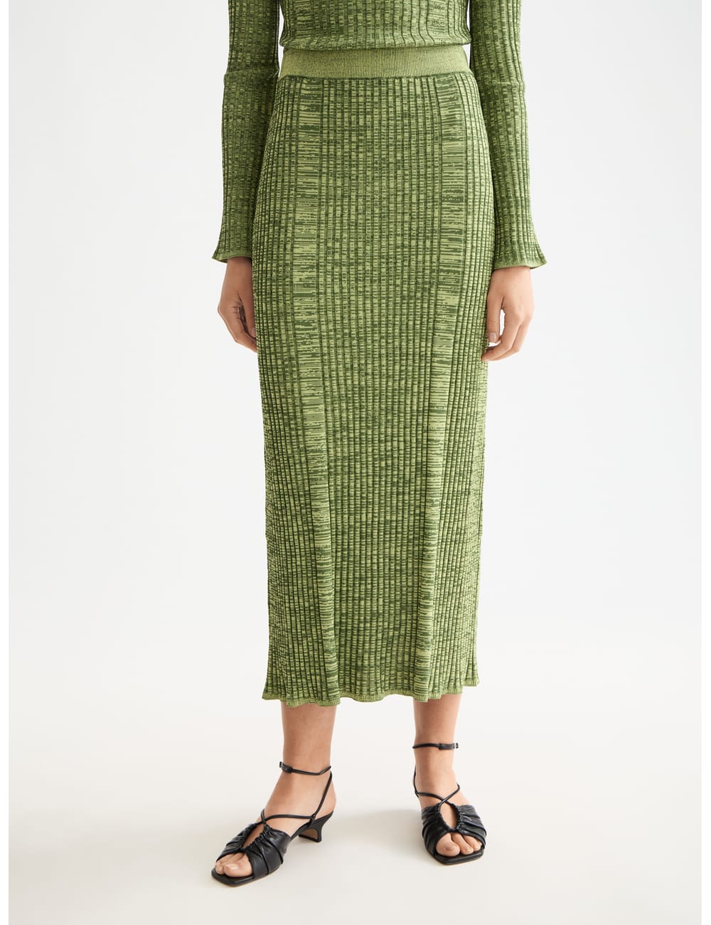 Elegant ribbed maxi skirt with a comfortable knit design. Perfect for versatile styling, offering a chic and timeless silhouette.
