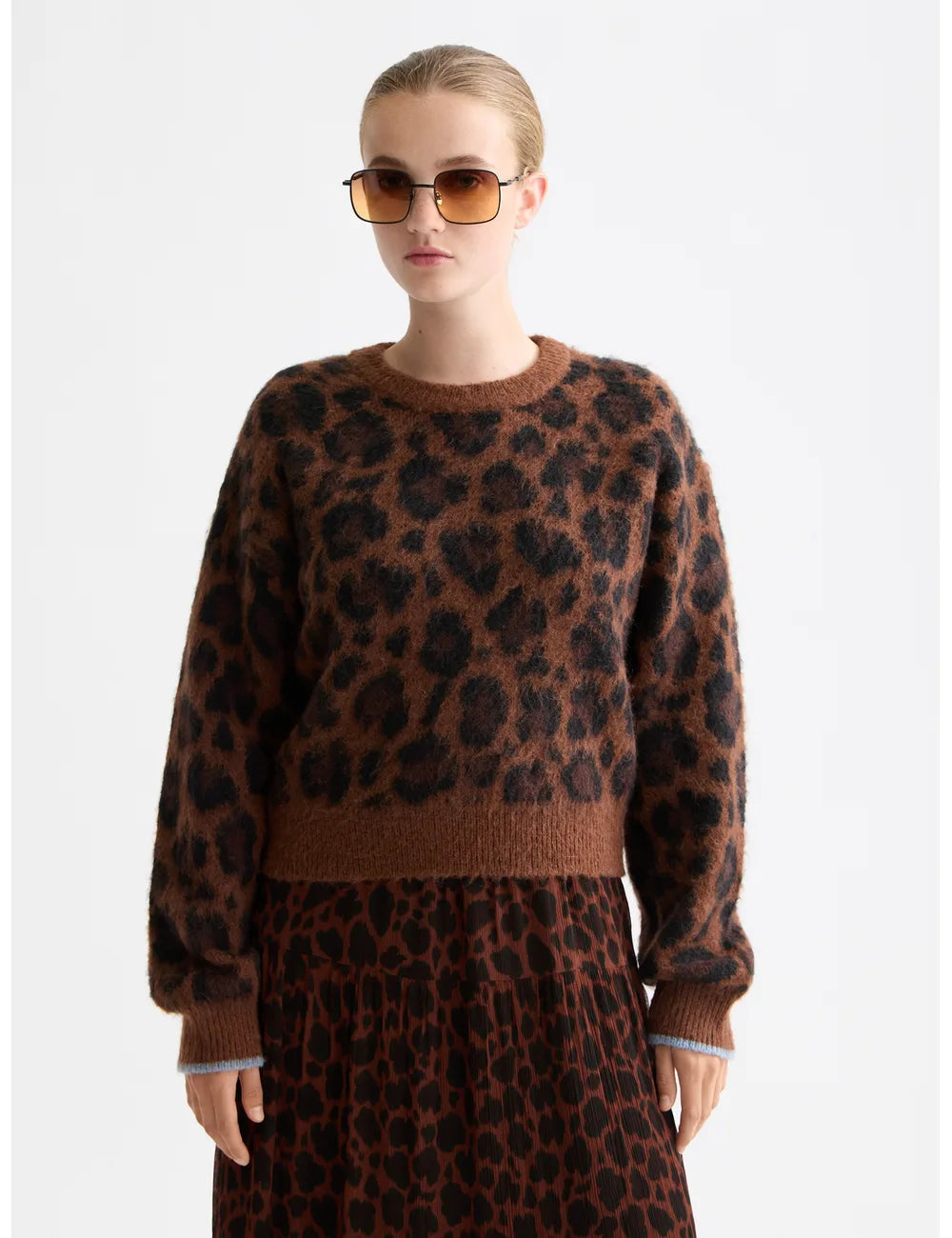 Cozy and stylish pullover with a fuzzy jacquard design. Perfect for layering, offering comfort and a chic look for any occasion.