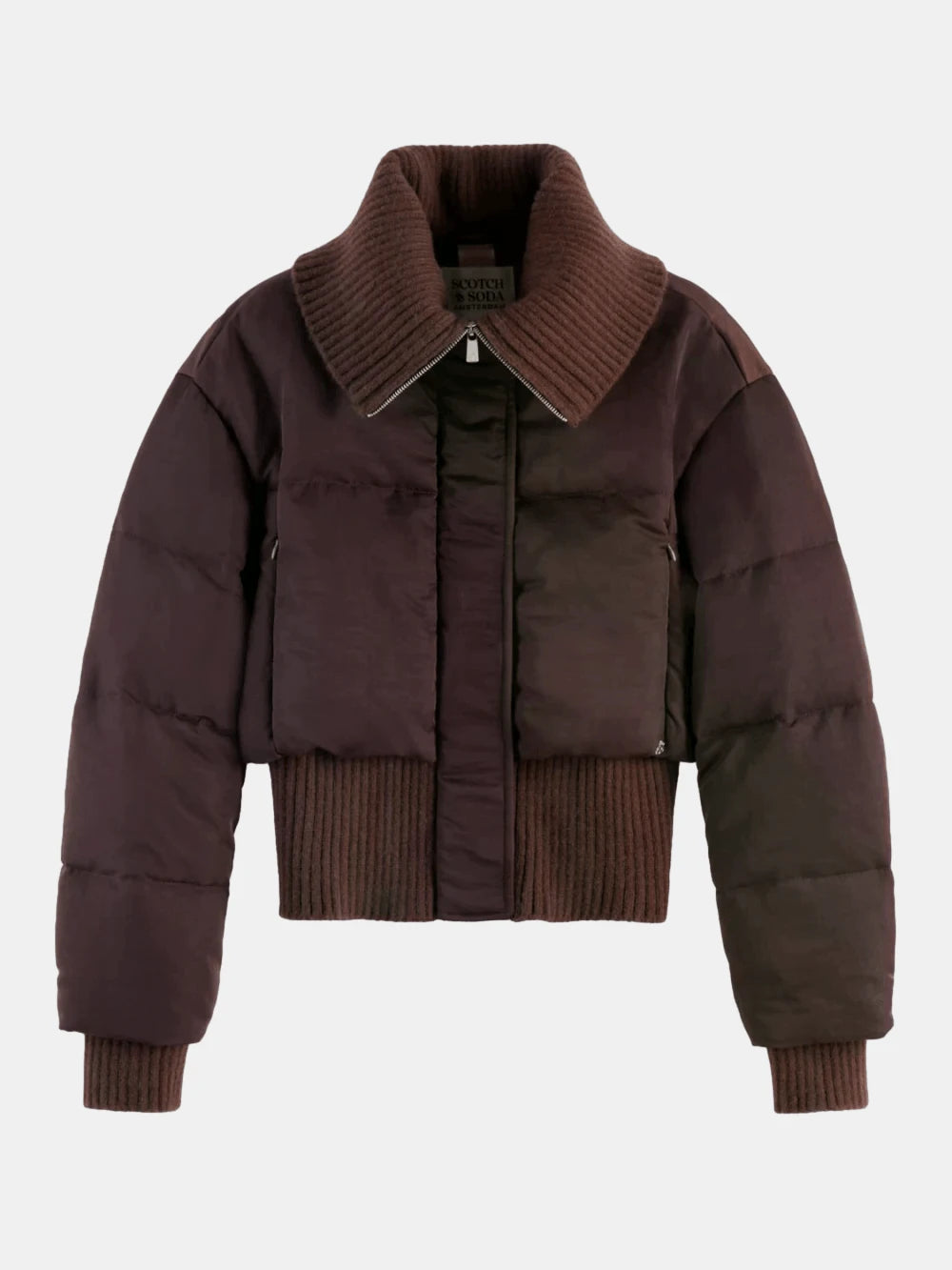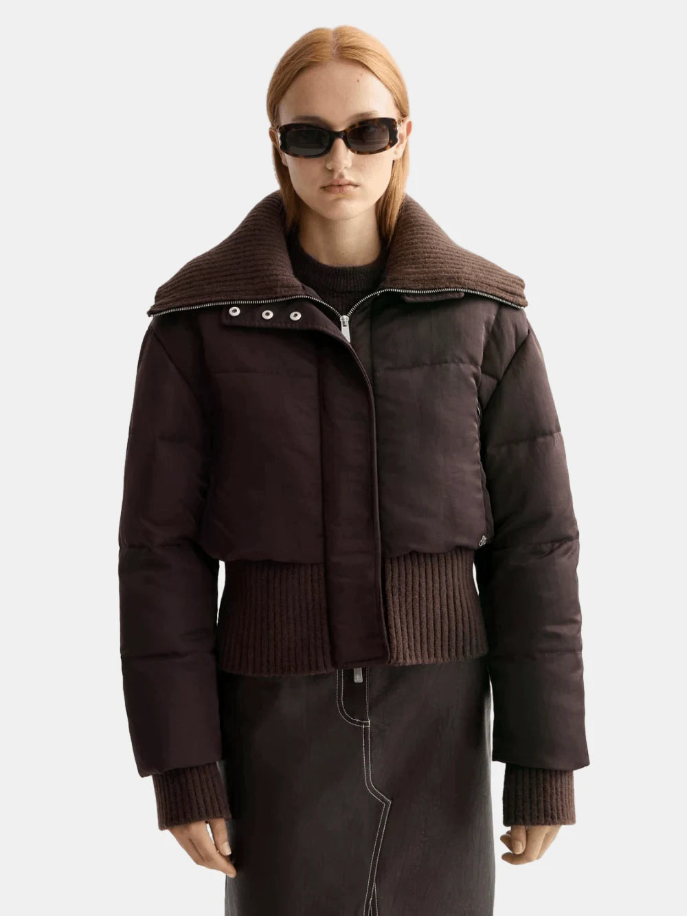 Stylish puffer jacket with aviator collar, offering warmth and comfort. Perfect for layering in chilly weather.