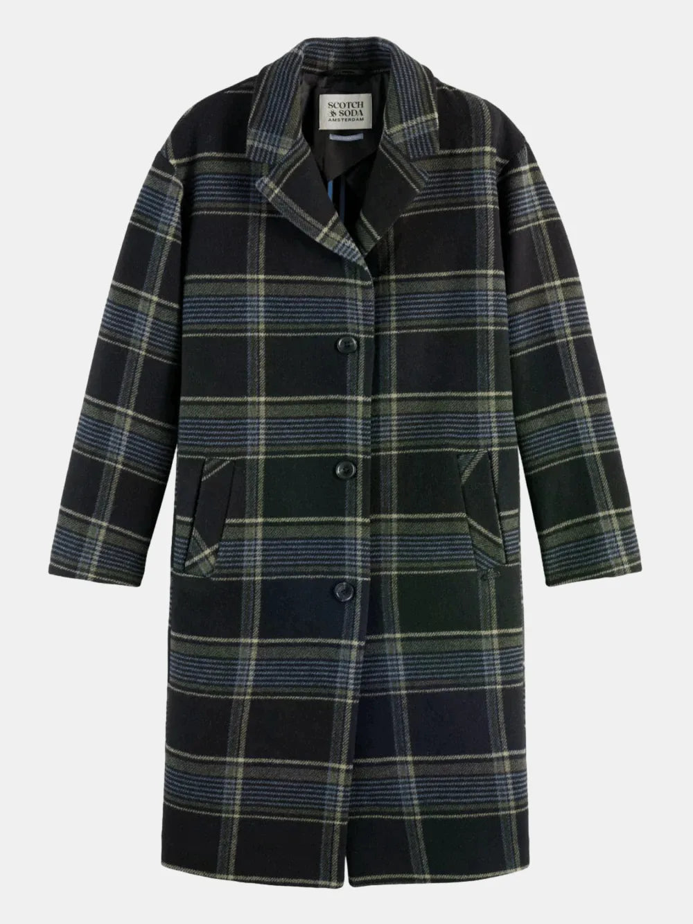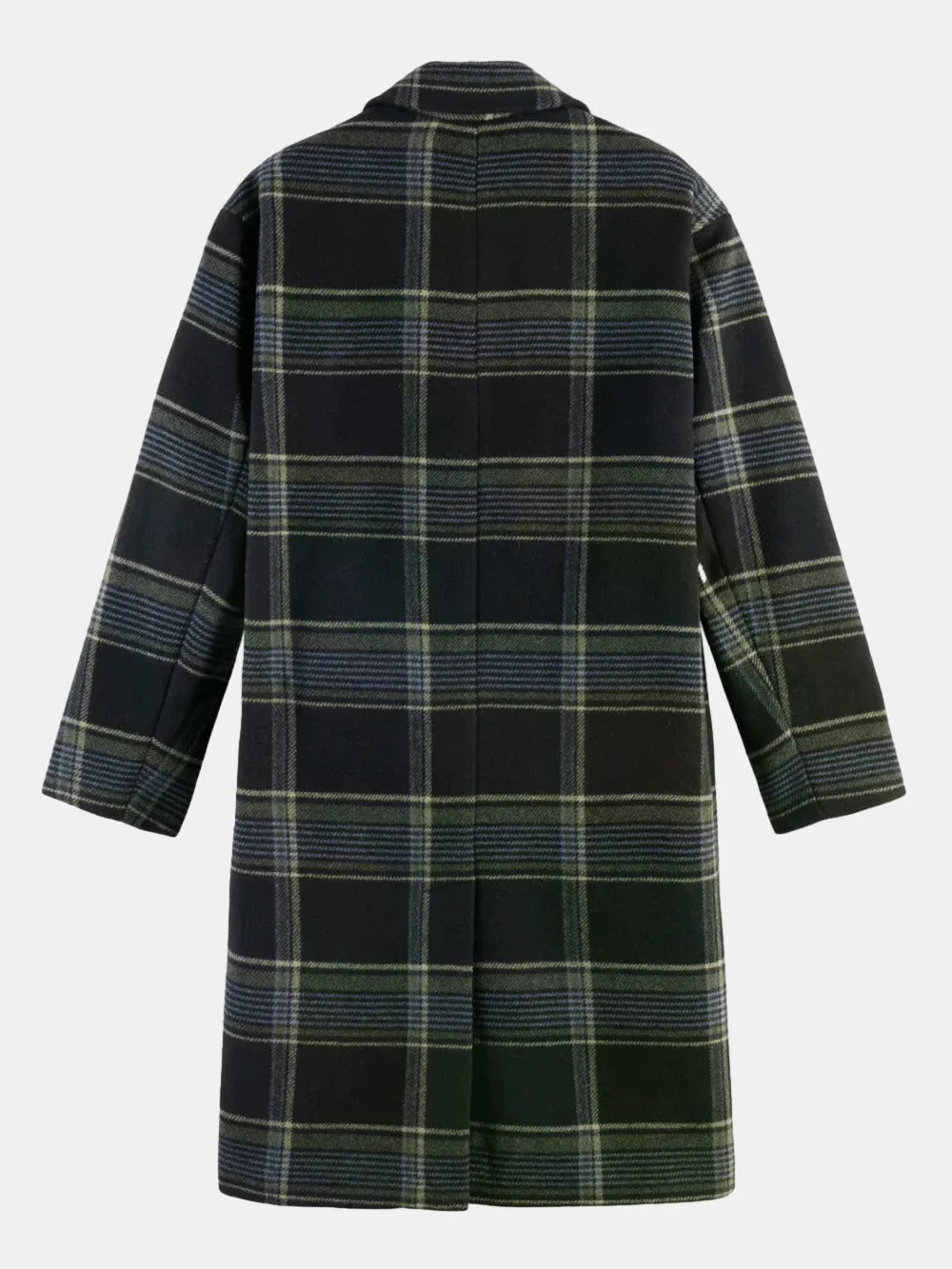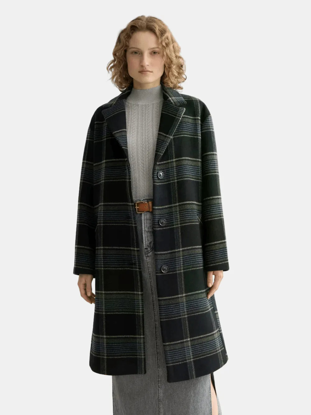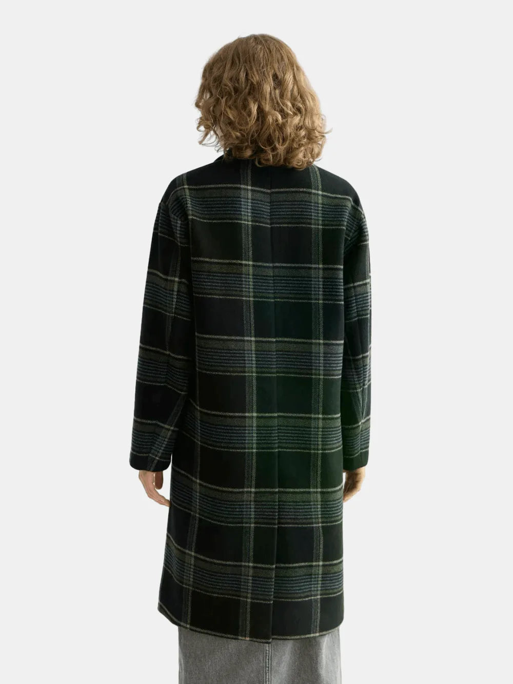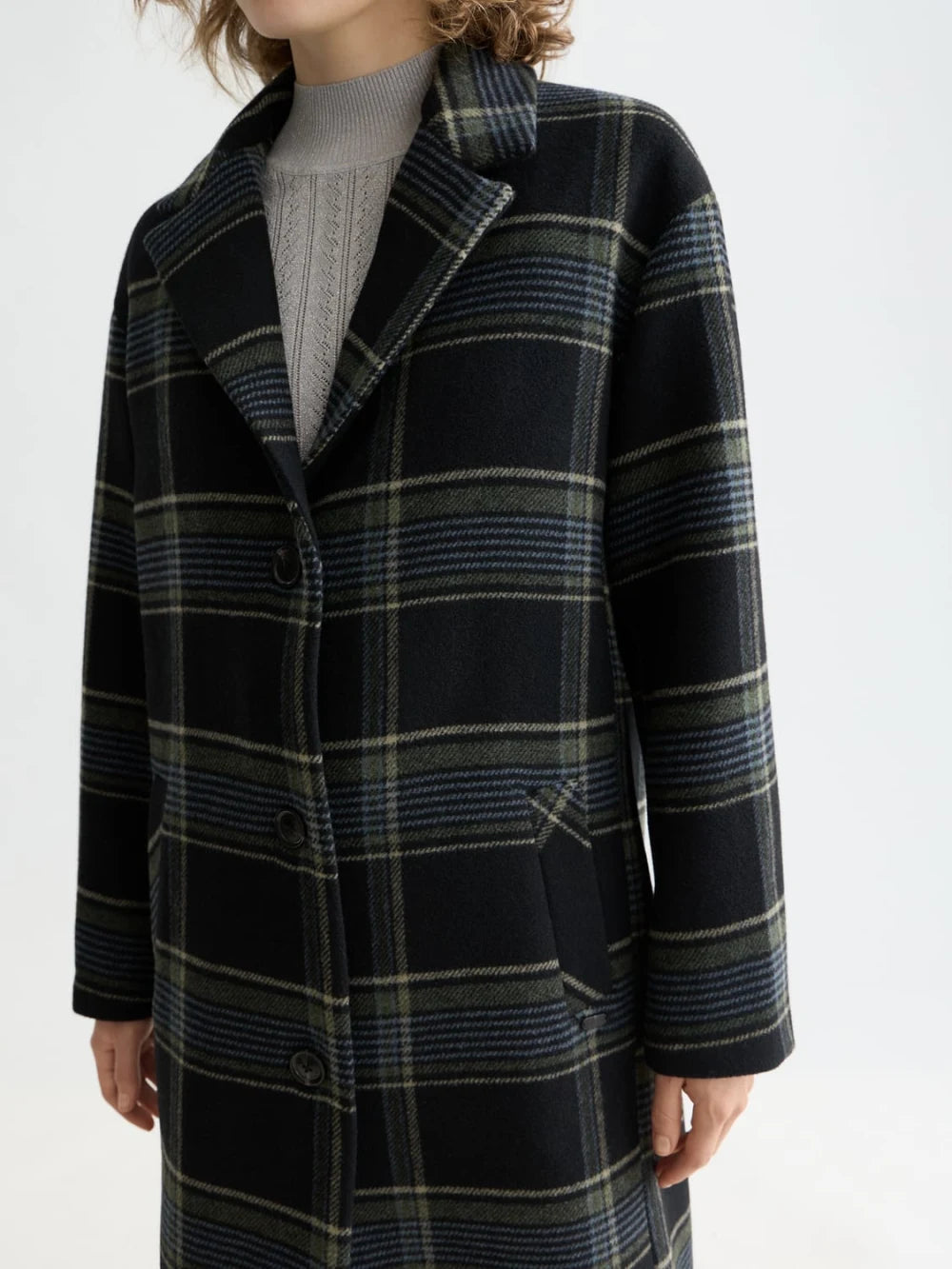 Relaxed single-breasted wool coat with a stylish check pattern. Perfect for layering, offering warmth and timeless elegance.