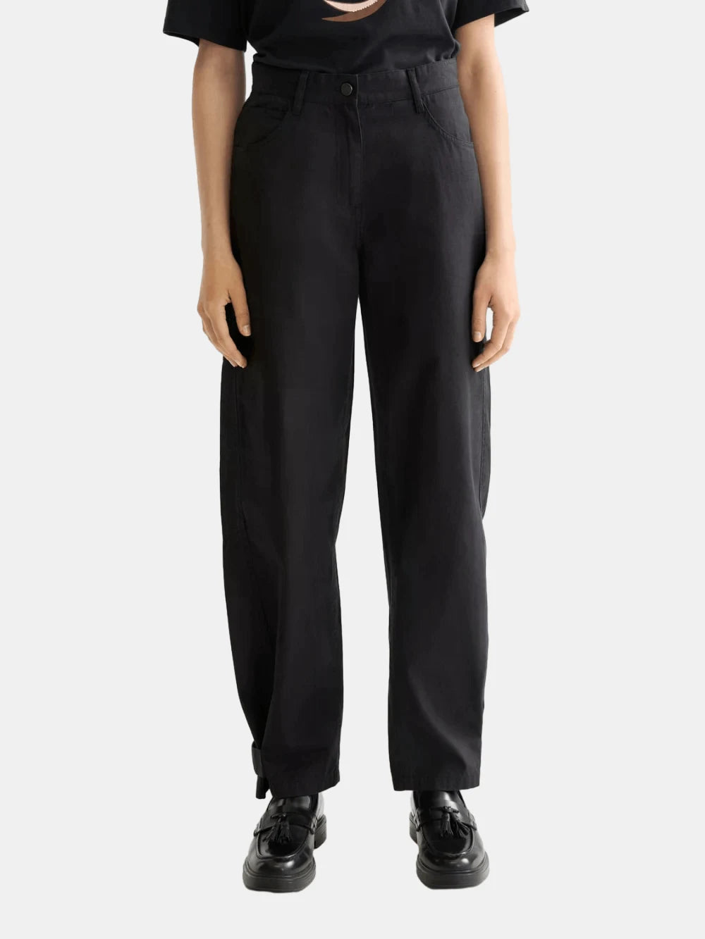 Stylish barrel leg pants with unique seam detail. Perfect for versatile looks, offering comfort and a modern silhouette.